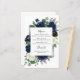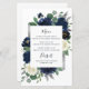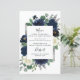 Navy Blue Silver Ivory Floral Wedding Menu Cards