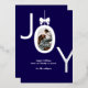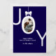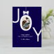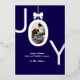 Silver JOY Real Foil Photo Foil Holiday Card features the word JOY with your favourite family photo inside the O made to look like an ornament with a bow on top. Navy blue background with real silver foil lettering makes this an elegant and modern holiday greeting your friends and family will be delighted to receive.