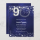 A modern, stylish photo invitation for a 90th birthday party. A navy blue background, decorated with stars. The blue colour is uneven. Personalise and add your photo and party details.