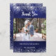 Celebrate your special day and express your heartfelt gratitude with our Custom Photo Wedding Cards, elegantly designed with a sophisticated navy blue, uneven coloured background and adorned with faux silver glitter. Perfect for sharing your favourite wedding memories, these cards are both stylish and personal, offering a unique way to thank your guests. Personalise and add your photo and thank you note. White text.