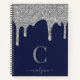 Navy Blue Silver Sparkle Glitter Drips Monogram Notebook