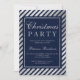 A modern, chic and elegant typography silver and navy blue stripes corporate Christmas party invitation with hand painted leaf foliage. All blue colour is fully customisable