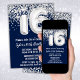 Navy Blue Silver Sweet 16th Birthday Party Invitation