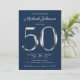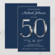 Navy Blue Silver Typography 50th Birthday Party Invitation