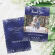 Celebrate your special day and express your heartfelt gratitude with our Custom Photo Wedding Cards, elegantly designed with a sophisticated navy blue, uneven coloured background and adorned with faux silver glitter. Perfect for sharing your favourite wedding memories, these cards are both stylish and personal, offering a unique way to thank your guests. Personalise and add your photo and thank you note. White text.