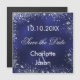 A Save the Date magnet for your wedding guests. A navy blue background, white text. The blue colour is uneven. Decorated with faux silver sparkles. Personalise and add your names and wedding date.