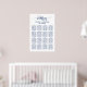 This navy blue simple calligraphy wedding seating chart poster is perfect for an elegant wedding. The white and blue design features chic rustic typography and a lovely romantic heart. This wedding poster includes enough room for up to 16 tables (160 guests). In addition to the placement of each guest, personalise this sign with the names of the bride and groom and the wedding date.