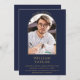 Navy Blue Simple Gold Arch Photo Graduation Party Invitation