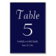 Guide your wedding reception guests to their table with this simple style table number card that features white, stylised lettering on a trendy, navy blue colour background. Design is on each side of card. Edit your card to change table number, wedding couple's names and date. Order cards separately for each table number.