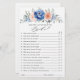 Navy blue blush pink floral bridal shower game (How well do you now the bride) featuring elegant bouquet of navy blue, royal blue , white , blush garden rose, hydrangea, and sage green eucalyptus leaves. Please contact me for any help in customisation or if you need any other product with this design.