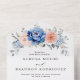 Navy Blue Slate Dusty Blush Pink Floral Wedding All In One Invitation