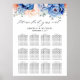 Navy blue blush pink floral wedding seating chart featuring elegant bouquet of navy blue, royal blue , white , blush garden rose, hydrangea, and sage green eucalyptus leaves. Please contact me for any help in customization or if you need any other product with this design.