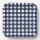 Navy Blue Small Classic Gingham Check Plaid Paper Plate