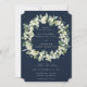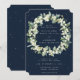 Navy Blue Snowberry+Eucalyptus Wreath Wedding Invitation