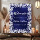 Welcome your guests in timeless winter style with this Navy Blue Snowflakes Wedding Welcome Poster. The deep navy blue uneven coloured background paired with a delicate frame of white snowflakes creates an elegant and romantic look — perfect for a sophisticated winter or holiday wedding. This design captures the magic of the season while adding a polished, modern touch to your décor.