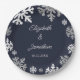 Navy Blue Snowflakes Winter Wedding Paper Plate