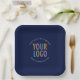 Promote your brand with durable square paper plates printed with your company logo. You can easily personalize these navy blue plates online to match any event or promotion. All colors are customizable. FDA-compliant, these plates are printed in the USA and sold in small order quantities. The size options are 9 x 9 inches and 7 x 7 inches. No setup fee.