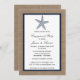 Navy Blue Starfish Burlap Beach Engagement Shower Invitation