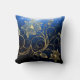 Navy Blue Starry Galaxy Gold Floral Monogram Name Cushion