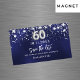 A modern and elegant Save the Date magnet for a 60th birthday party. A navy blue background decorated with faux silver stars. Personalise and add a date and name. The blue colour is uneven. The text: Save the Date is written with a large trendy hand lettered style script.