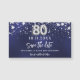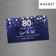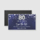 A modern and elegant Save the Date magnet for a 80th birthday party. A navy blue background decorated with faux silver stars. Personalise and add a date and name. The blue colour is uneven. The text: Save the Date is written with a large trendy hand lettered style script.