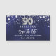 A modern and elegant Save the Date magnet for a 90th birthday party. A navy blue background decorated with faux silver stars. Personalise and add a date and name. The blue colour is uneven. The text: Save the Date is written with a large trendy hand lettered style script.