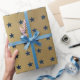 Navy Blue Stars Pattern on Metallic Gold Wrapping Paper