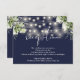 Navy Blue String Lights Floral Wedding Reception Enclosure Card