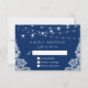 Navy Blue String Lights Lace Wedding RSVP Reply Card.