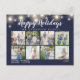Happy Holiday navy blue background with string lights background that can be customised with 8 photos postcard.