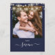 These elegant navy blue signature script double-sided photo table numbers featuring pretty string lights are perfect for all celebrations. Designed by Thisisnotme©