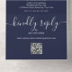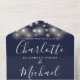 Navy Blue String Lights QR Code Monogram Wedding All In One Invitation