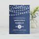 Chic modern summer wedding invitation design with simple elegant glowing string lights hanging across the top and a classy mix of modern and calligraphy script fonts on a printed faux watercolor texture background. A simple and stylish preppy design, perfect for summer! Click the CUSTOMIZE IT button to customise fonts, move text around and create your own unique one-of-a-kind invitation design.