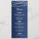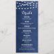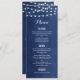 Chic modern summer wedding menu card design with simple elegant glowing string lights hanging across the top and a classy mix of modern and calligraphy script fonts on a printed faux watercolor texture background. A simple and stylish preppy design, perfect for summer! Click the CUSTOMIZE IT button to customise fonts, move text around and create your own unique one-of-a-kind invitation design.
