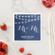 Navy Blue String Lights Wedding Monogram Napkin