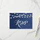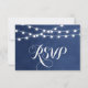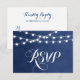 Chic modern summer wedding RSVP reply card design with simple elegant glowing string lights hanging across the top and a classy mix of modern and calligraphy script fonts on a printed faux watercolor texture background. A simple and stylish preppy design, perfect for summer! Click the CUSTOMIZE IT button to customise fonts, move text around and create your own unique one-of-a-kind invitation design.