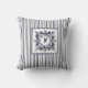 Navy Blue Stripe Vintage Label and Monogram Cushion