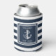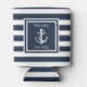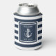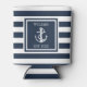 Navy Blue Striped Nautical Anchor Boat Family Name Can Cooler