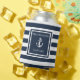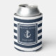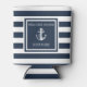 Navy Blue Striped Nautical Anchor Boat Name Can Cooler