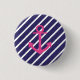 Navy Blue Stripes And Hot Pink Anchor Design 3 Cm Round Badge
