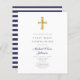 Navy Blue Stripes Boy First Communion Invitation