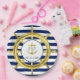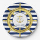 Navy Blue Stripes Gold Nautical Wedding Paper Plate