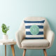 Navy Blue Stripes Pattern, Mint Green Monogram Cushion