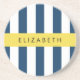 Navy Blue Stripes, Striped Pattern, Your Name Coaster