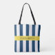 Navy Blue Stripes, Striped Pattern, Your Name Tote Bag