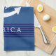 Navy Blue Stripes White nautical Anchor Tea Towel