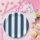 Navy Blue Stripes, White Stripes, Striped Pattern Paper Plate