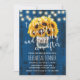 Rustic Sunflower & String Lights Navy Blue Barn Wood Wedding Rehearsal Dinner Invitations.