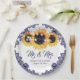 Navy Blue Sunflower Floral Lace Wedding Paper Plate