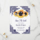 Elegant navy blue and sunflower wedding save the date card featuring sunflowers, string lights and navy floral lace.